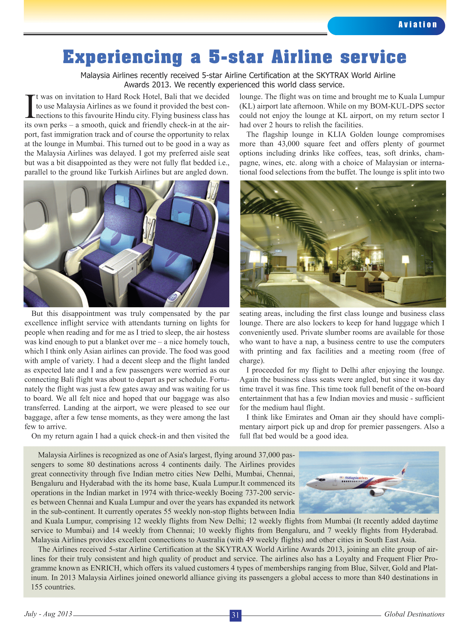 Global Destinations July-Aug 2013: Malaysian Airlines