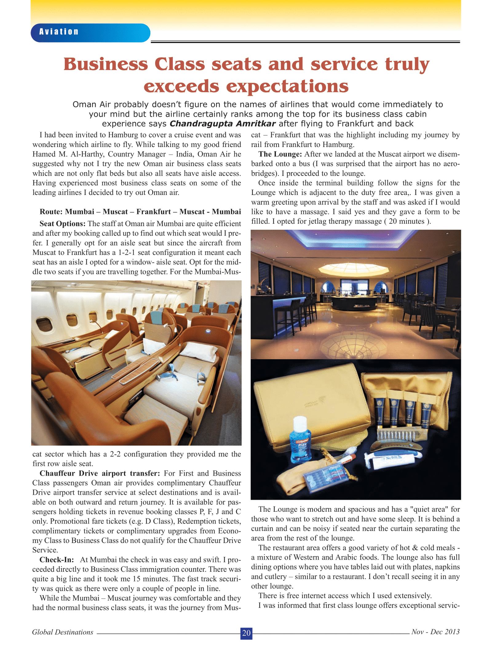 Global Destinations Nov-Dec 2013: Oman Air Business Class